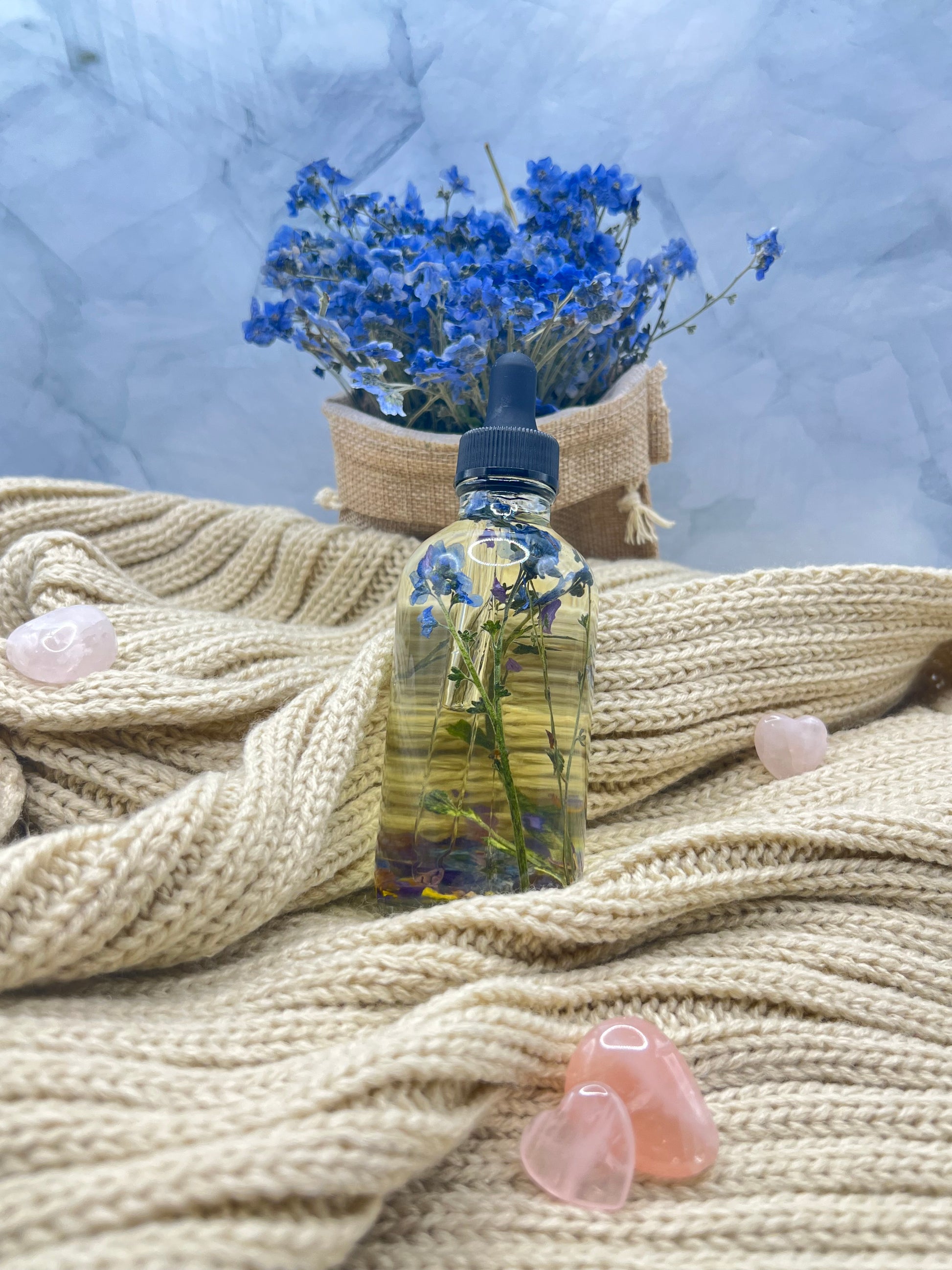Immerse yourself in the enchanting embrace of Forget Me Not Body Oil, a luxurious blend designed to captivate your senses and leave a lasting impression. This exquisite formula is a perfect combination of oils to deeply hydrate and rejuvenate your skin, creating a silky radiant finish.